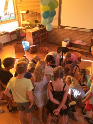 Onze klas werd de afgelopen dagen steeds leger en leger, maar gelukkig konden wij het opvullen met veel gezelligheid. Deze week stond in het teken van opruimen, versieren, filmpje kijken en spelletjes spelen maar helaas ook afscheid nemen... Wesley is deze week voor het laatst bij ons op school, hij zal na de zomer starten op de Piramide in Alkmaar en Anne verhuist deze zomer naar Brabant en zij zal daar op een nieuwe school in groep 5 starten. Wij wensen Wesley en Anne heel veel plezier op hun nieuwe school en hopen dat ze snel weer een keertje bij ons langskomen.