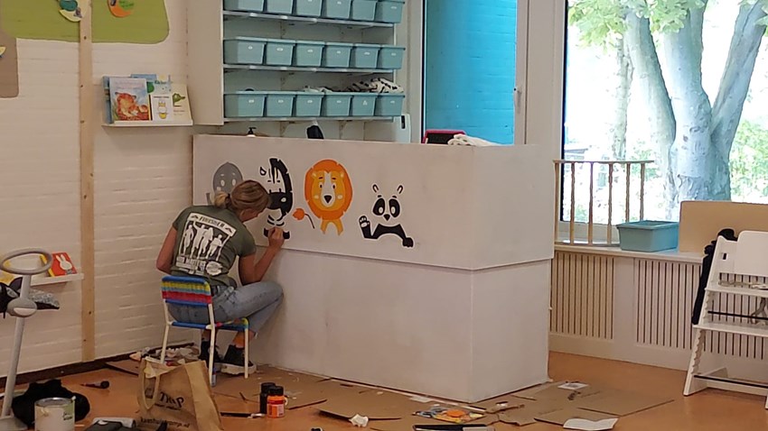 Ons kinderdagverblijf wordt steeds mooier! Juf Desi maakt een ontzettend mooie schildering. Dat wordt gezellig!