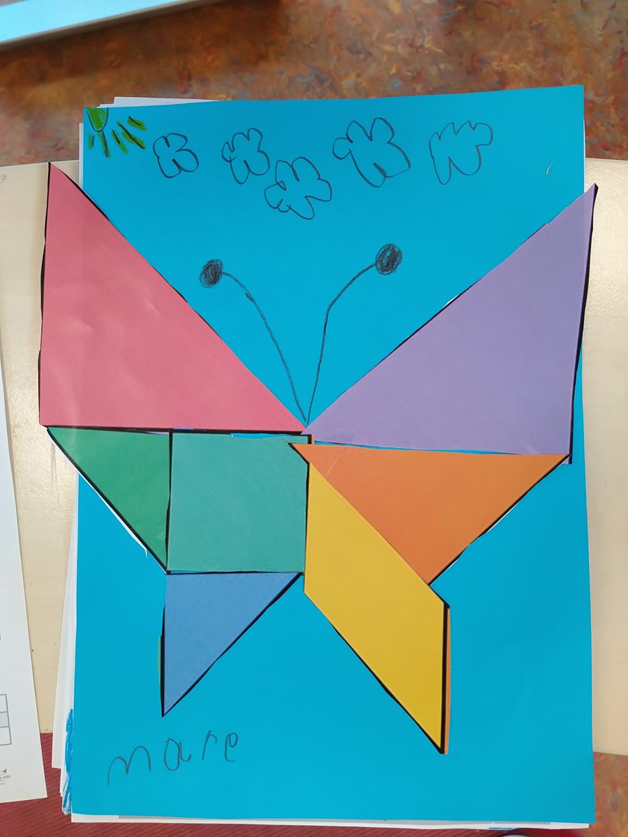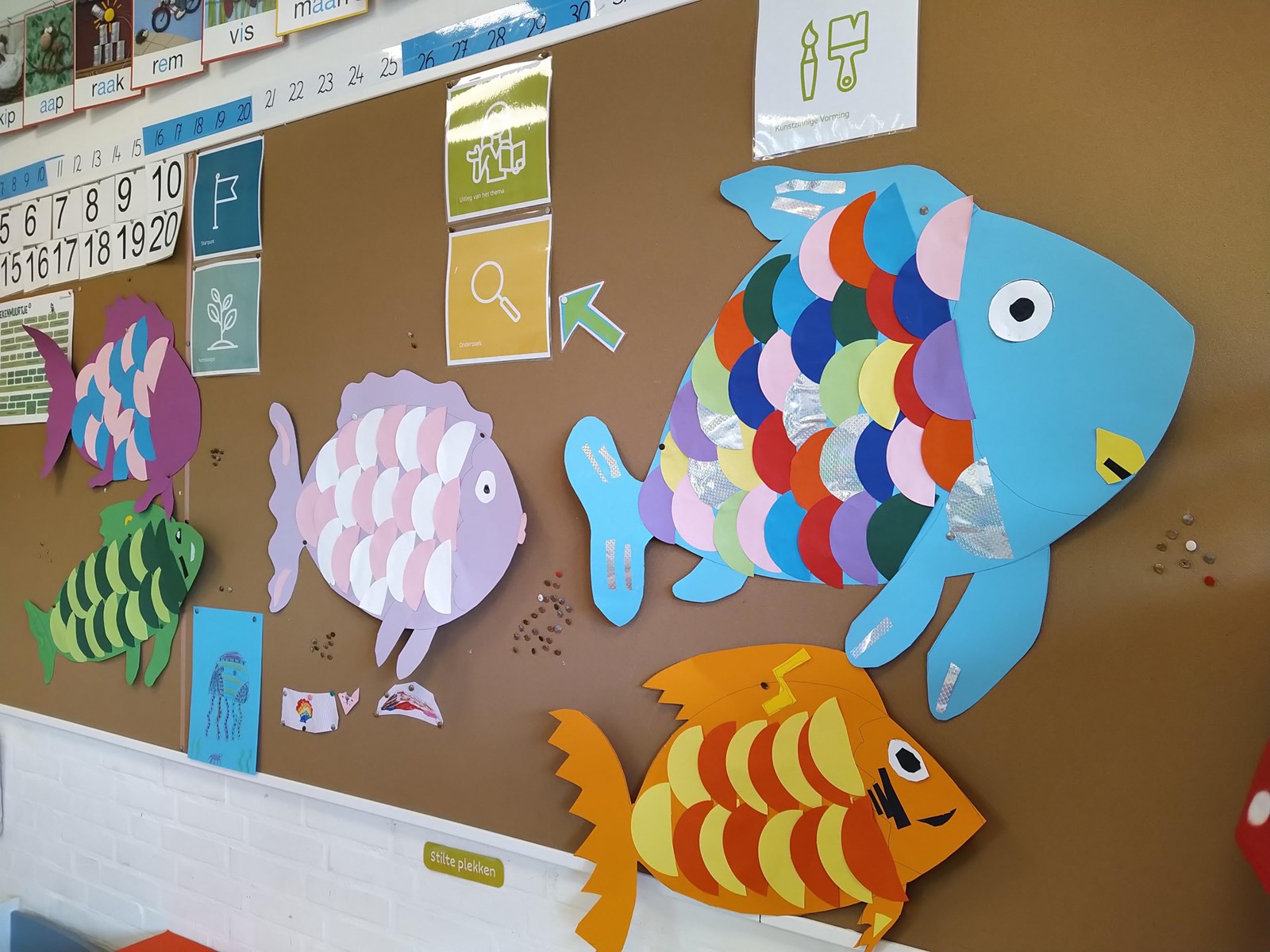 Afgelopen week maakten de kinderen kennis met een Chinese puzzel: Tangram. Hiermee maak je de leukste en gekste creaties. We maakten de letter /b/ in ons schrijfschrift en alle cijfers zijn aangeleerd! Ook waren wij allemaal dirigenten. Als warming-up voor de schrijfles mochten de kinderen hun potlood gebruiken om figuren te maken op muziek en in een ritme! De klas hangt vol met allemaal zeedieren, dat is voor ons toneelstuk die we binnenkort gaan opvoeren. (De exacte datum zal nog gecommuniceerd worden). Woensdagochtend vormden we een grote rij en zwaaiden we groep 8 uit, die gezellig op kamp gingen. In de gymzaal hebben we veel spellen tegen elkaar gedaan; Hockey, voetbal en stoeien op de mat of samenwerken met turnen. Op vrijdag stonden de vier stippen van de Stip-it actie centraal. Samen stonden we op tegen pesten. En speelden we een verzamelspel met de hele klas met de buitengym.