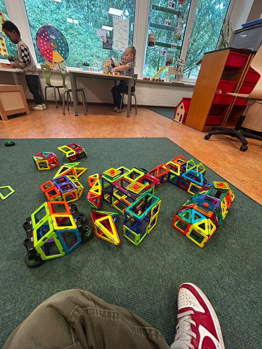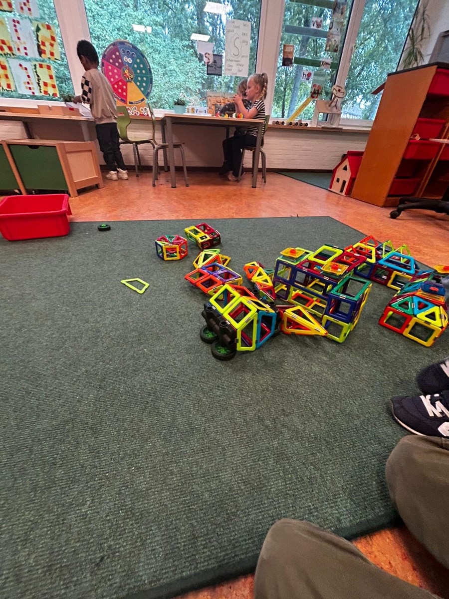 We hebben verrekijkers gemaakt, de inloopwerkjes zijn af en de kinderen maken safari jeeps met geosmart of een oerwoud met de dopjes. Mooie voorbeelden hiervan zittten als foto bij het weekbericht.