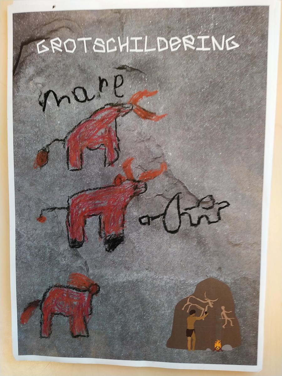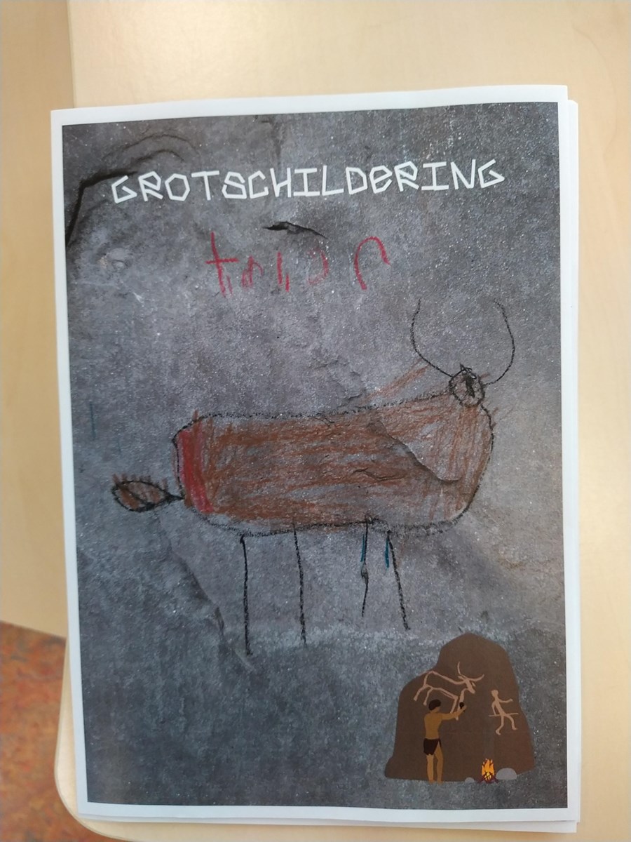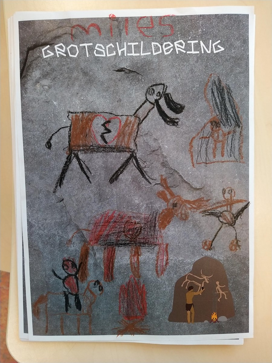 We gaan als een trein, want er is weer een week om in groep 3. Ons nieuwe thema: Tijd detectives hebben we geopend in het Museum van Oudheden met een speurkaart en een lezing over alle spullen die er lagen. Zo wisten de kinderen wel te vertellen wat een fotocamera was en wisten ze ook dat het Aap-noot-mies-plankje op school werd gebruikt, daarentegen werd een ouderwetse waterpomp aangezien voor een Milkshakemaker, dus nog genoeg om uit te zoeken! We gaan terug in de tijd en we zijn vrijdag begonnen bij het ‘begin’; grotschilderingen. Als echte grotbewoners tekenden we belangrijke dieren/voorwerpen in onze eigen grot. Woensdag startte de Kinderboekenweek, hierin zullen we de komende dagen op de meest onverwachte momenten een leesalarm laten afgaan. Dan pakken we een boekje erbij en lezen we terplekke. De letter /d/ stond centraal met lezen en om niet in de war te raken gebruiken we onze duimen. (Vraag maar aan uw kind). Splitsen bij rekenen was ook nieuw! Heel belangrijk om dat goed te kunnen. Hoe zitten getallen in elkaar en hoe kunnen we ze verdelen.
