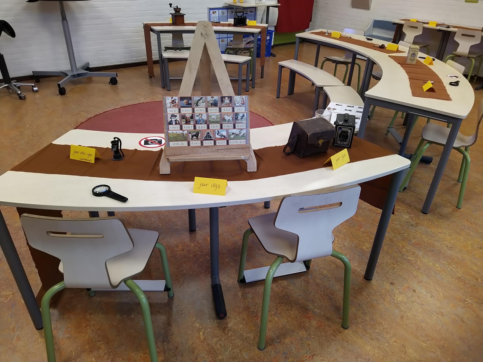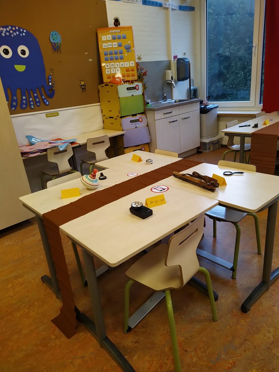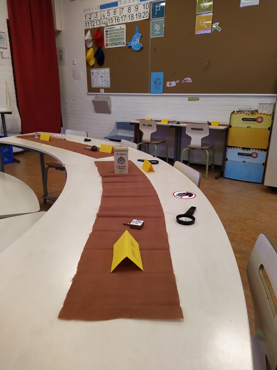 We gaan als een trein, want er is weer een week om in groep 3. Ons nieuwe thema: Tijd detectives hebben we geopend in het Museum van Oudheden met een speurkaart en een lezing over alle spullen die er lagen. Zo wisten de kinderen wel te vertellen wat een fotocamera was en wisten ze ook dat het Aap-noot-mies-plankje op school werd gebruikt, daarentegen werd een ouderwetse waterpomp aangezien voor een Milkshakemaker, dus nog genoeg om uit te zoeken! We gaan terug in de tijd en we zijn vrijdag begonnen bij het ‘begin’; grotschilderingen. Als echte grotbewoners tekenden we belangrijke dieren/voorwerpen in onze eigen grot. Woensdag startte de Kinderboekenweek, hierin zullen we de komende dagen op de meest onverwachte momenten een leesalarm laten afgaan. Dan pakken we een boekje erbij en lezen we terplekke. De letter /d/ stond centraal met lezen en om niet in de war te raken gebruiken we onze duimen. (Vraag maar aan uw kind). Splitsen bij rekenen was ook nieuw! Heel belangrijk om dat goed te kunnen. Hoe zitten getallen in elkaar en hoe kunnen we ze verdelen.