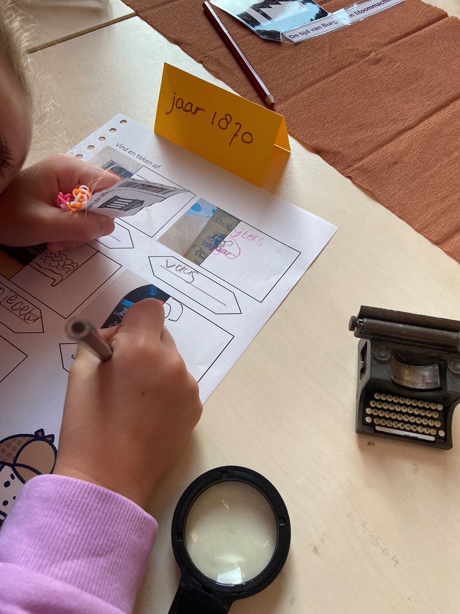 Woensdag was het lokaal van groep 3 omgetoverd tot een museum van oudheden. Er stonden prachtige spullen. Wat was het leuk om de verbazing bij de kinderen te zien. De spullen de wij uit onze tijd kennen, is nu echt ondenkbaar. Vrijdag hebben de kinderen een puzzel moeten oplossen. Want dat is wat een echte detective doet. Door het verzamelen van alle puzzelstukjes, kan de puzzel opgelost worden. De komende periode gaan wij als echte tijddetectives aan de slag.