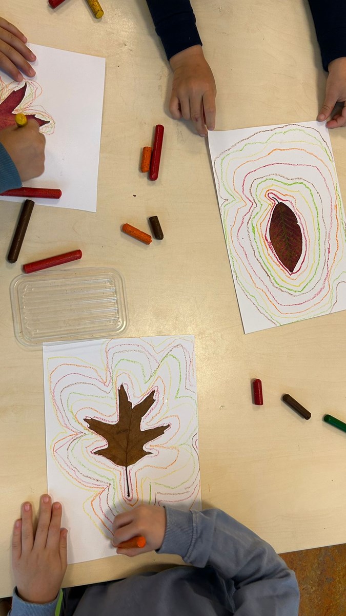 Deze week hadden we ook een vrije keuze werkje, hierbij gingen de kinderen creatief aan de slag met een gedroogd herfstblaadje. Eerst werd het blaadje omgetrokken met wasco en daarna overschilderd met ecoline. Dit geeft een prachtig effect. De kinderen waren hier zichtbaar trots op!