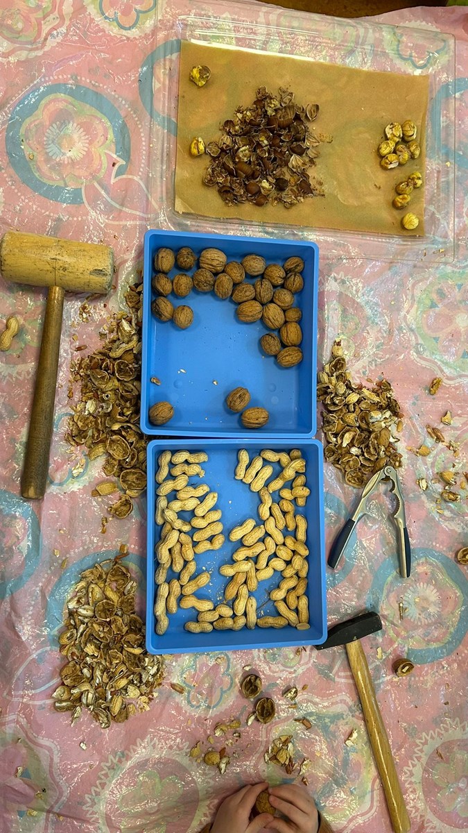 Afgelopen week zijn de kinderen volop bezig geweest met herfstactiviteiten. Zo hebben ze zelf pinda’s gedopt, walnoten gekraakt en kastanjes gepeld. Deze werden natuurlijk ook geproefd. De pinda’s vielen het meest in de smaak, terwijl de kastanjes voor de meeste kinderen bij één keer proberen mocht blijven. 😉