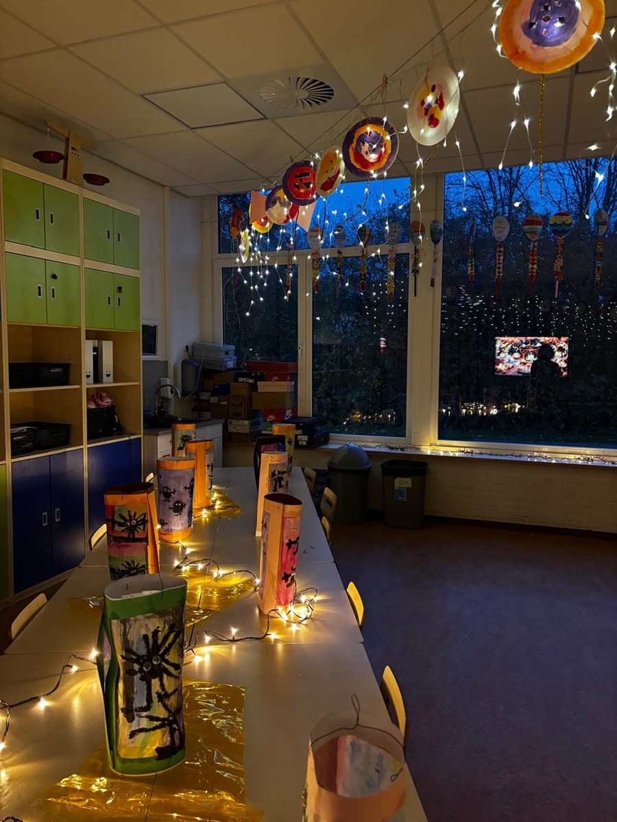 Op maandag genoten we van lichtjesavond. Het was een hele gezellige avond. De klas was mooi versierd en de lampionnen zagen er prachtig uit. Dinsdagavond mochten de kinderen eindelijk met hun lampion langs de deuren. Het was spannend, maar iedereen heeft het super leuk gehad. Na Sint Maarten was het dan echt zover om ons langzamerhand voor te bereiden op het afscheid van Aram. Vrijdagmiddag stond in het teken van afscheid nemen en dat is best nog wel lastig. In het geheim hebben we voor Aram geknutseld. De kinderen hebben gewerkt aan een vriendenboekje, een blad met versierde hartjes en natuurlijk het allermooiste cadeau de voetbal. Wat een leuk initiatief om voor Aram een bal te kopen met alle namen van de klas. Hij was er dan ook ontzettend blij mee, maar tegelijkertijd was het afscheid heel erg moeilijk. Voor Aram, maar ook voor de kinderen. Wat gaan wij Aram missen. We wensen hem heel veel plezier op zijn nieuwe school en veel woongeluk in zijn nieuwe huis. Wie weet komen we elkaar nog een keertje tegen.