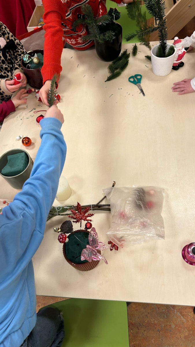 Woensdag stond in het teken van de kerststukjes. Wat zijn ze prachtig geworden. Aan de hulpouders, bedankt! De kerststukjes zorgden donderdagavond voor extra gezelligheid op de tafels.