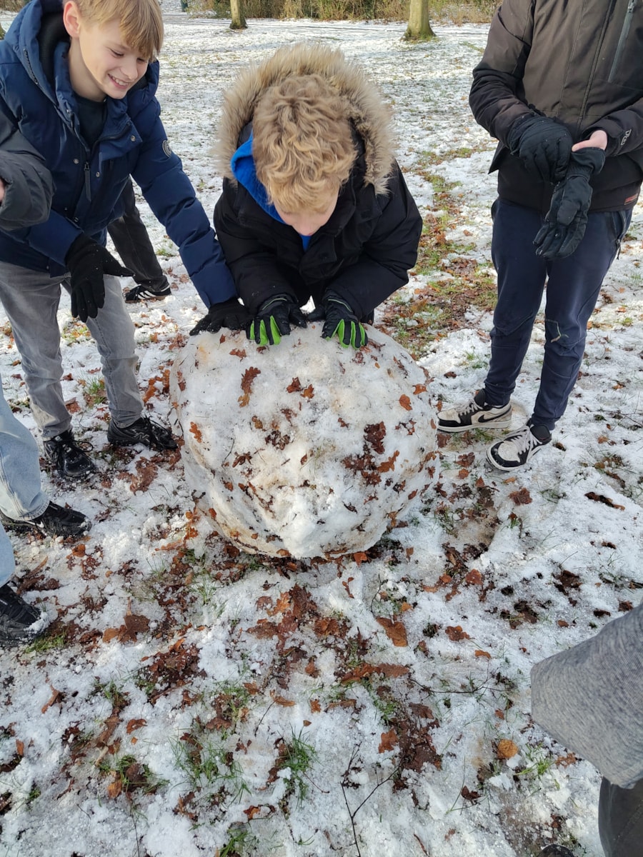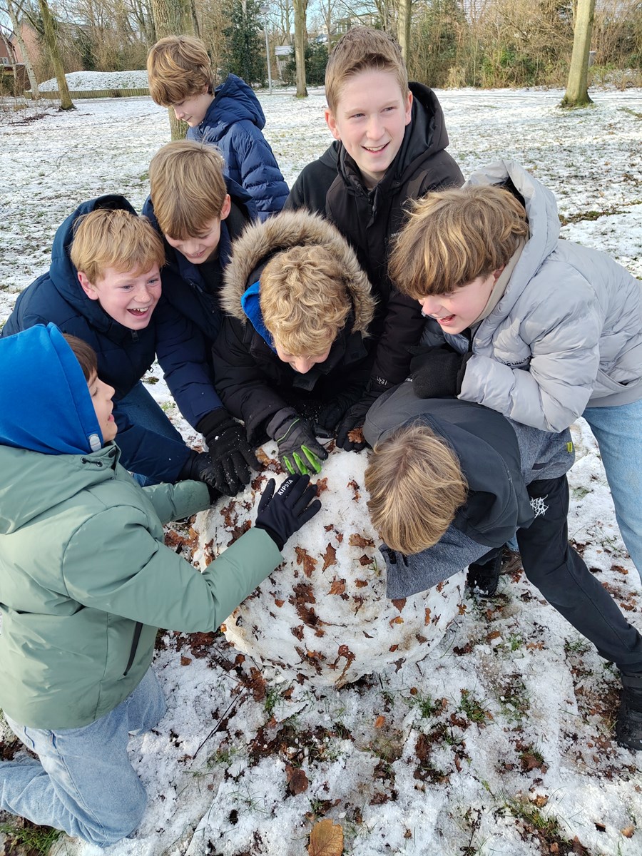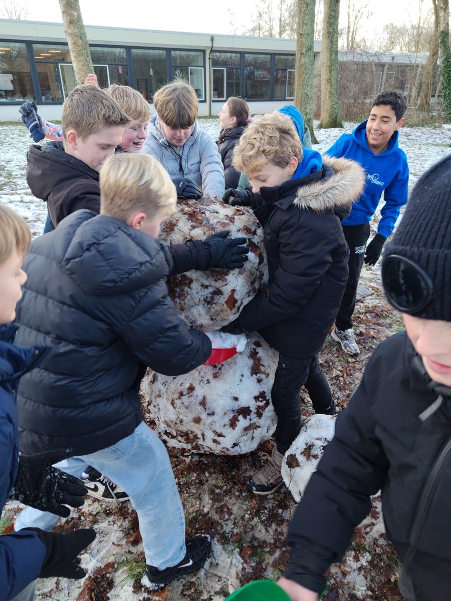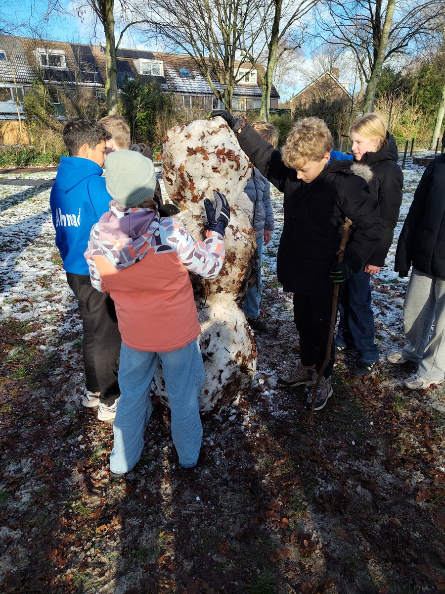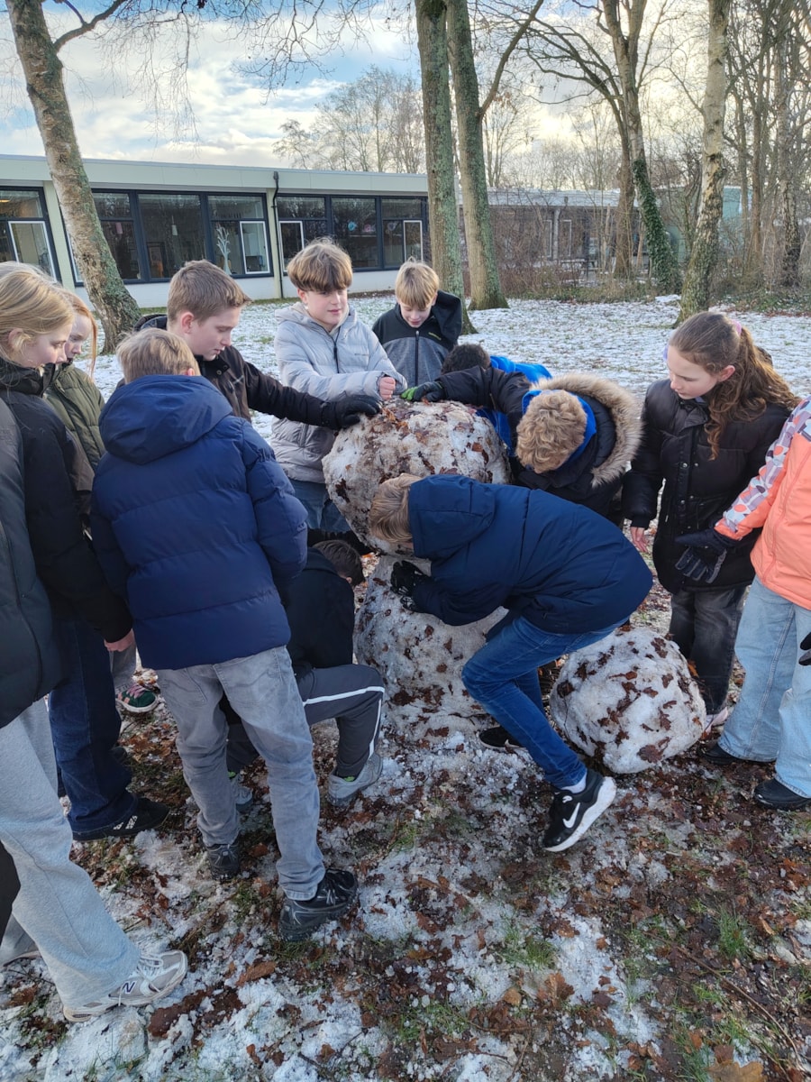 Deze week hebben we goed kunnen genieten van sneeuwballen gooien en sneeuwpoppen maken. Met de grootte van onze sneeuwpoppen bleek een goede samenwerking essentieel.