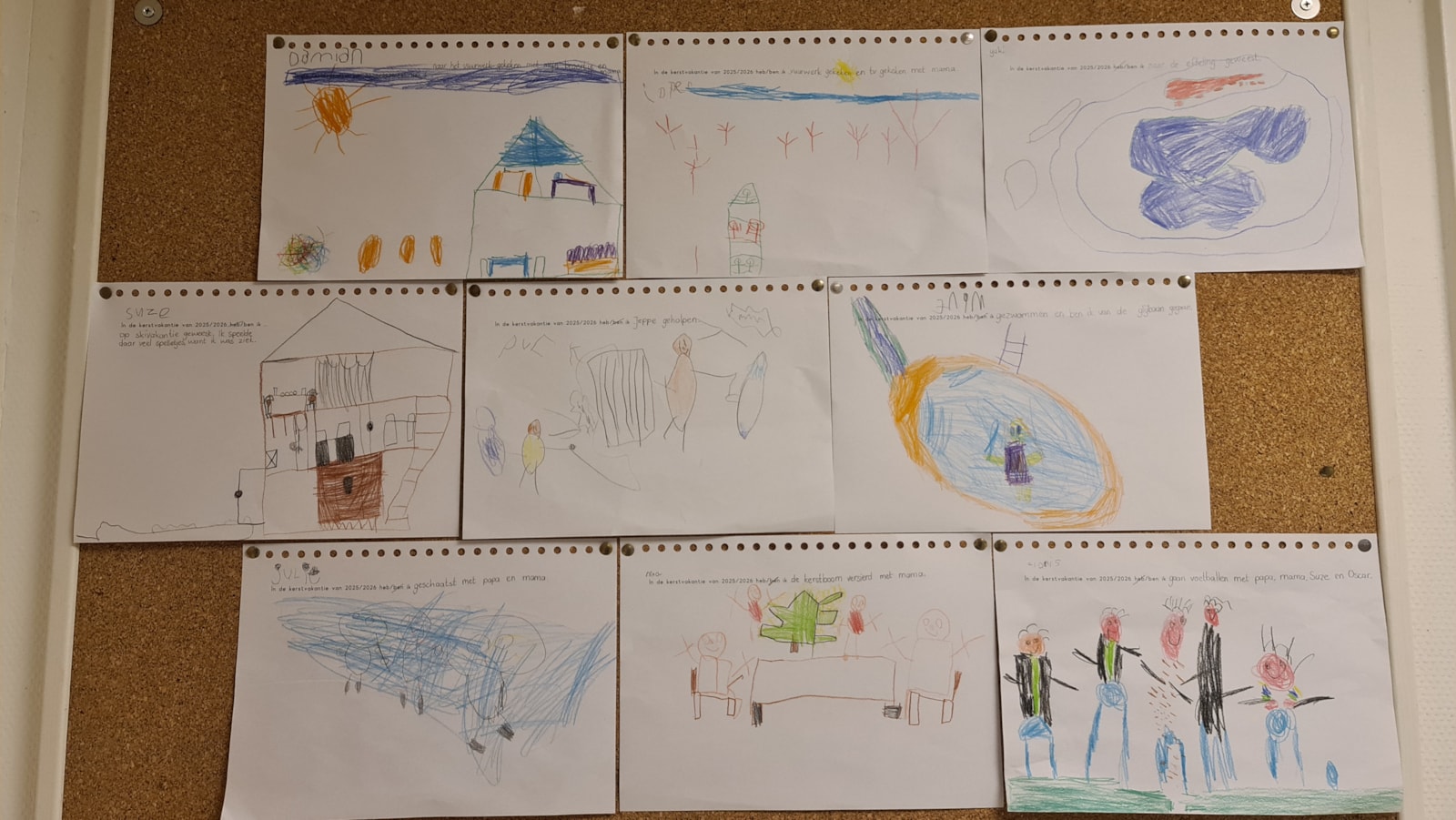 Tot slot maakten de kinderen een tekening over hun kerstvakantie. Deze hangen op het prikbord in de gang, leuk om volgende week samen even te bekijken.