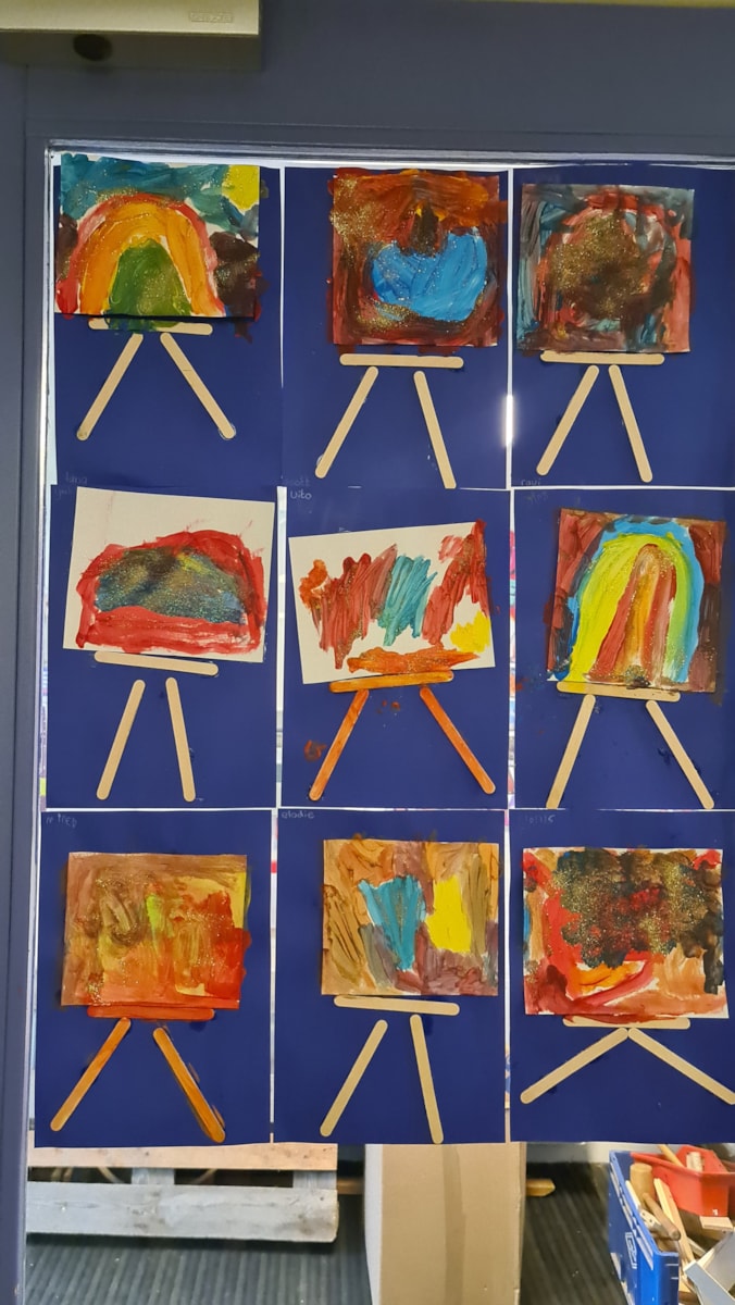 Daarna gingen de kinderen zelf aan de slag met hun eigen schilderij. Zij kregen alleen de primaire kleuren en mochten hiermee mengen tot zij de gewenste kleur hadden.