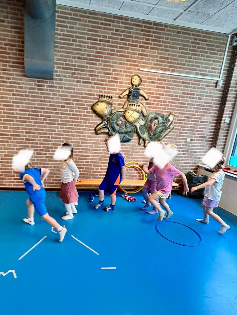 We hebben de olympische spelen gekeken en buiten nagespeeld. Ook in de gymzaal druk aan het sporten geweest. Met een schaatsbaan, bobsleebaan en schansspringen. Schaatsen met het handje achter de lichaam en gaan!
