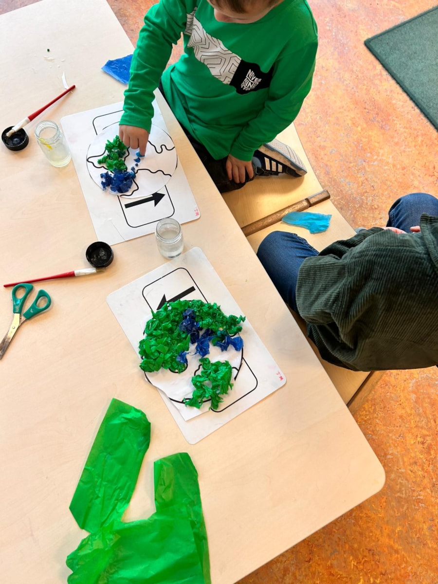 We zijn ook creatief bezig geweest. De kinderen hebben verschillende vlaggen nagetekend en wereldbollen geknutseld.