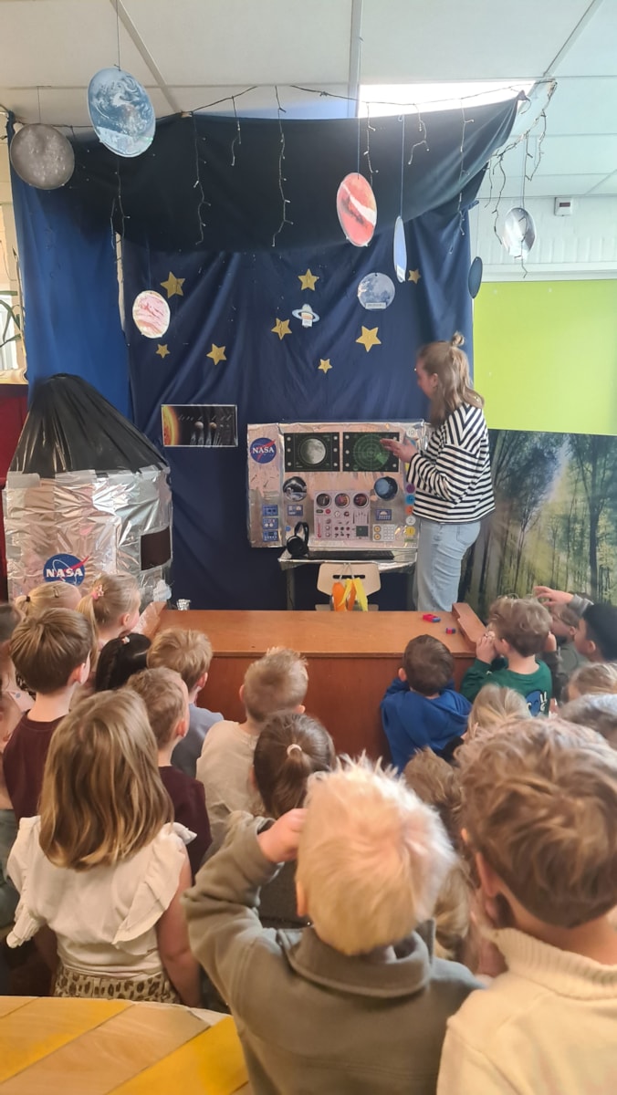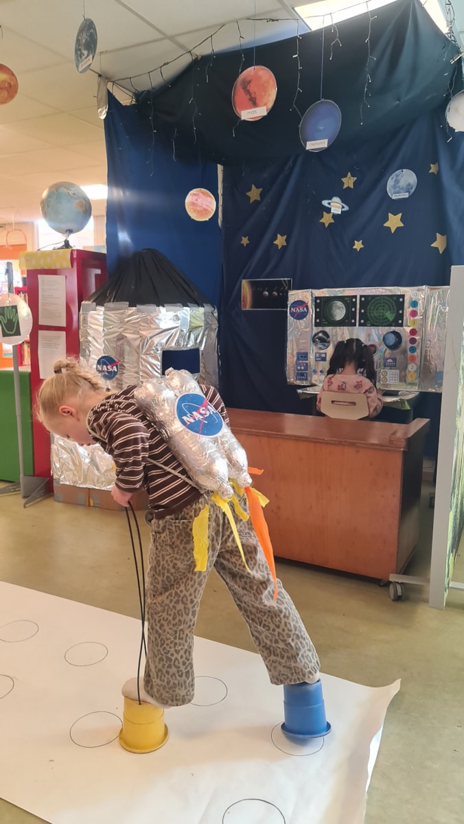 Ook is deze week de themahoek op de gang geopend. Deze is volledig ingericht binnen het thema als een ruimtestation en raket. De kinderen zijn erg enthousiast en kunnen niet wachten om hier lekker te gaan spelen en ontdekken.