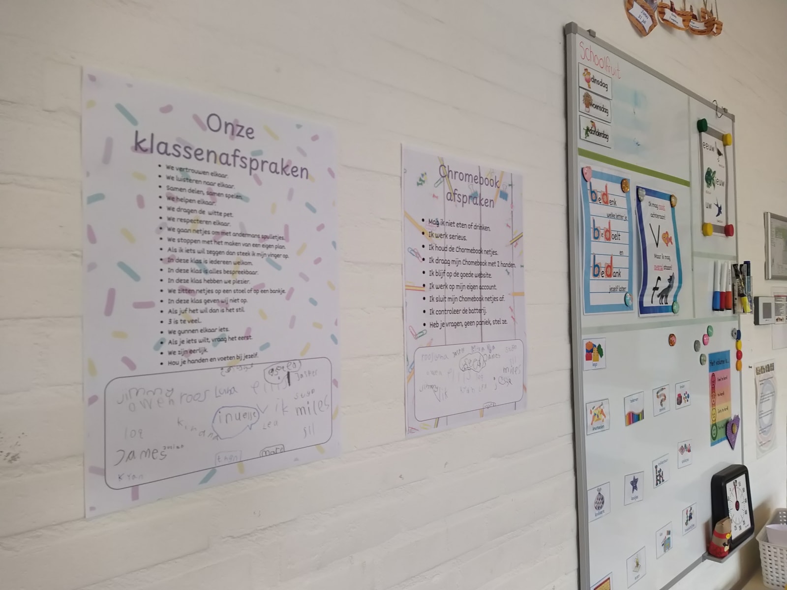Een kort weekje, mede door de studiedag, vloog voorbij. Maar dat betekent niet dat we minder gedaan hebben! Integendeel op dinsdag kozen de kinderen bij de oefening: de Slagboom voor de witte pet, want iedereen wilde te vertrouwen zijn. We hebben ook weer vernieuwde klassenafspraken gemaakt waar iedereen het mee een was. De afspraken omtrent de Chromebooks is hierin ook meegenomen. Ook gingen de Paaslootjes mee naar huis. Of iedereen deze geheim weet te houden, dat is nog maar de vraag, maar we kijken alvast uit naar donderdag! Deze week hebben de kinderen gemeten met een meetlint. Alles in de klas werd opgemeten. Hoeveel cm is een stoel, tafel, kast of etui? Dat weten de kinderen van groep 3 nu. Ook moesten ze op zoek naar de Wolf en de 7 geitjes. Bij ieder geitje vonden ze een woord en die moest worden onthouden en opgeschreven. Op vrijdag speelden we 10-tellen-in-de-rimboe, het ballen-zoekspel en de pittenzakestafette. Voor ons thema wist juf Rachel de kinderen te verwonderen met de vraag: wat gebeurt er als je één ingrediënt weglaat in het recept van pannenkoeken. Nou, de structuur en smaak veranderen wel degelijk!