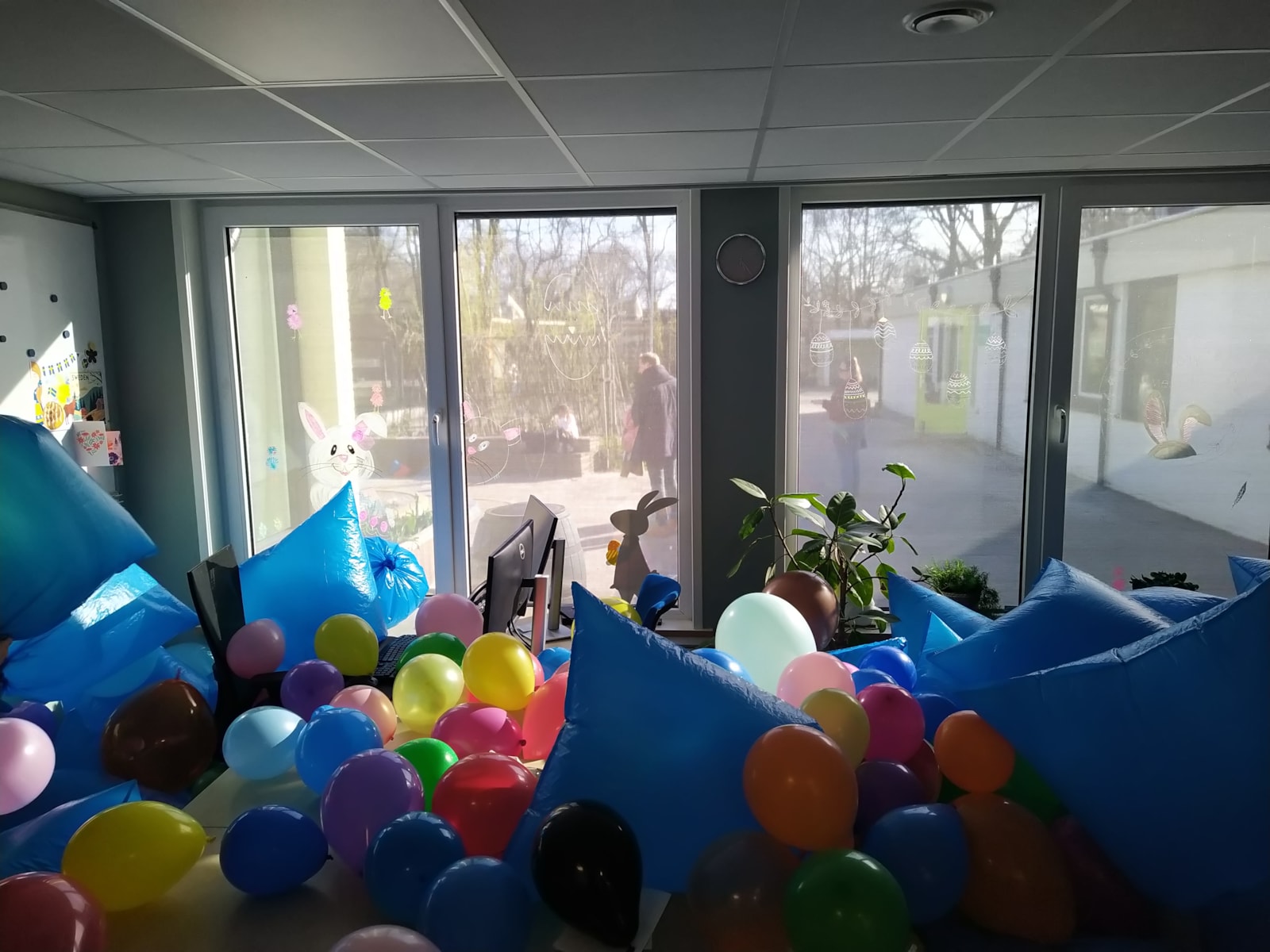 Wat een gezellige week hebben we weer beleefd. In de gymzaal speelden we verschillende spellen: hoepelbasketbal, 1 tegen 1 rugby en kwartetvoetbal. Dus alle balspelen passeerden de revue. De alpaca-race stond centraal tijdens het automatiseren; hierbij is het de bedoeling dat we met + en – sommen de alpaca vooruithelpen. De streepjesgetallenlijn heeft ook zijn intreden gemaakt, dus we kunnen nu heel snel grote getallen plaatsen tot en met 100. Het grote dikke streepje; tientallen, korte dikke streepje: 5-tallen en de dunne streepjes zijn de eenheden. Op 1 april lag het hele directiekamertje vol met ballonnen en zaten er een hele hoop veters los. Op donderdag keken we de zandtovenaar en aten ons heerlijke zelfgemaakte ontbijtje op. Ook hebben we eieren gezocht in de klas en bij de Bult. Een speurtocht door de school maakte de dag helemaal compleet.