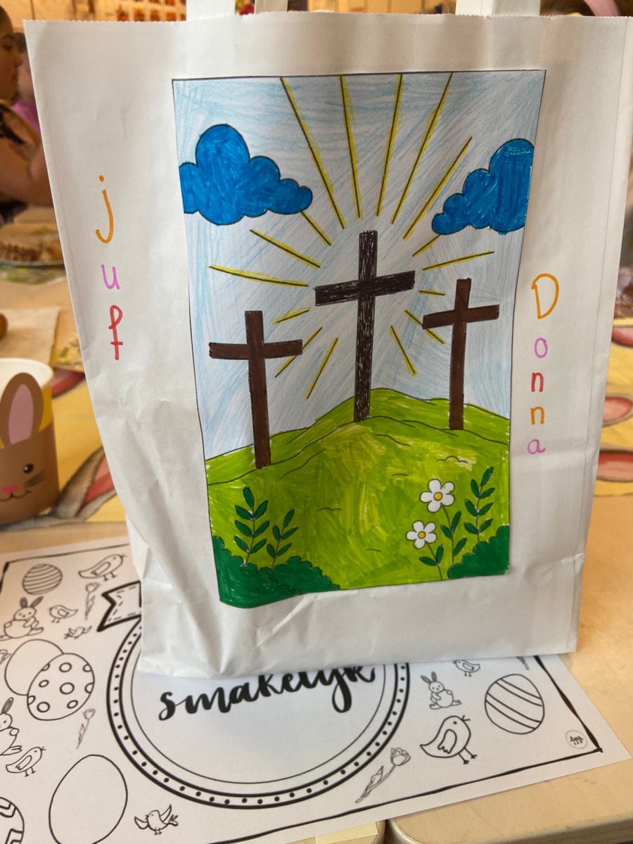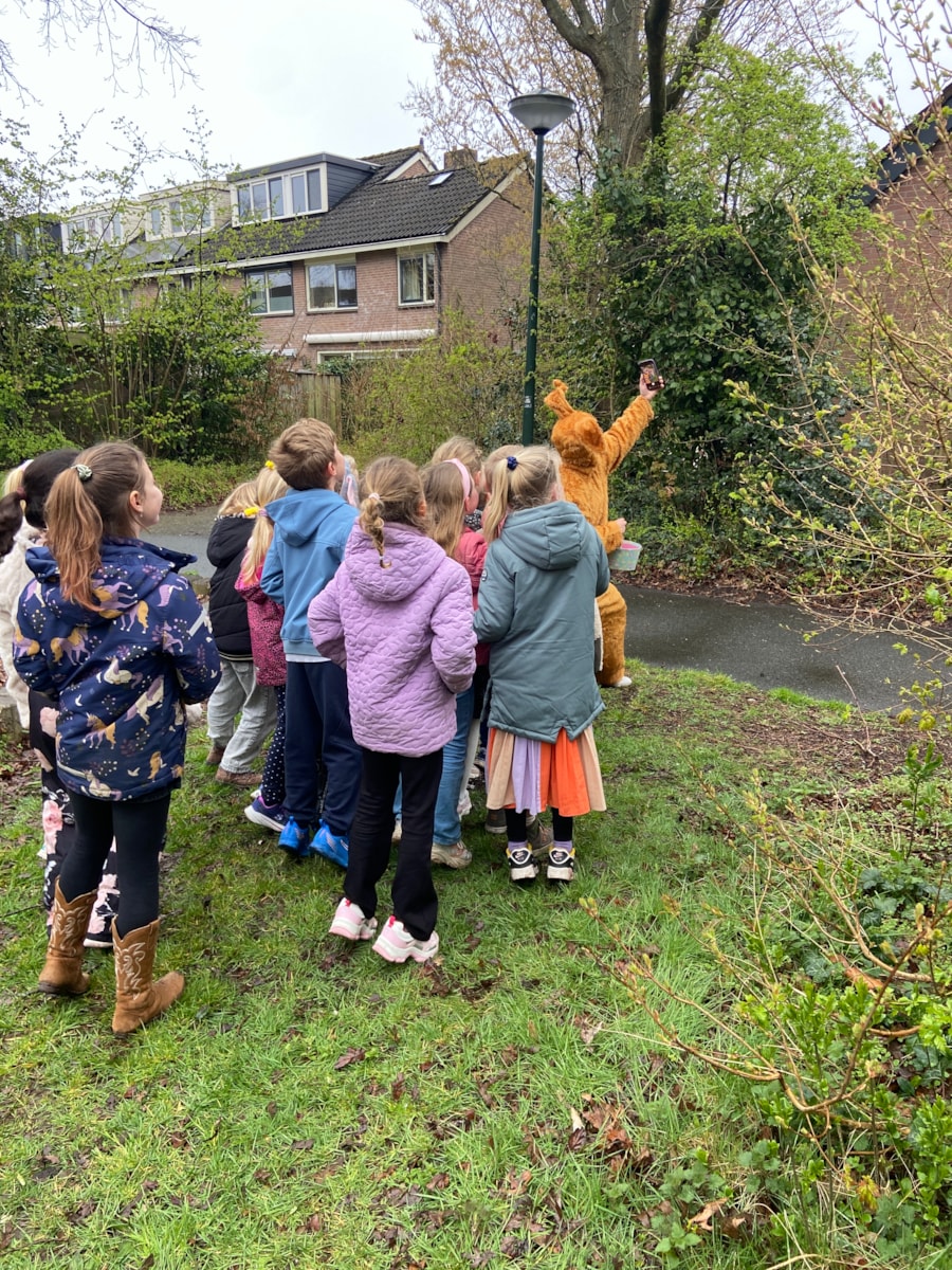 Na wat chaotische dagen en een hele grappige woensdag, sloten we de week af met een dag die in het teken stond van Pasen. De kinderen keken hier erg naar uit en waren dan ook heel erg enthousiast. We begonnen de dag met een heerlijk ontbijt. Wat had iedereen hun best gedaan op de tasjes. Alle tasjes waren gevuld met heerlijk eten. Denkt u volgend jaar ook aan een 10-uurtje en een lunch? Na het ontbijtje hadden we nog wel wat werk af te maken van de afgelopen week. De rest van de dag bestond uit verschillende activiteiten. We luisterden naar de boekpromo van Lina, juf heeft het Paasverhaal voorgelezen vanuit het Christelijke geloof, we hebben paaseieren gezocht, een selfie gemaakt met de paashazen en we sloten de dag af met een tafelbingo. Het was een heerlijke week en nu mogen we genieten van een paar extra vrije dagen.