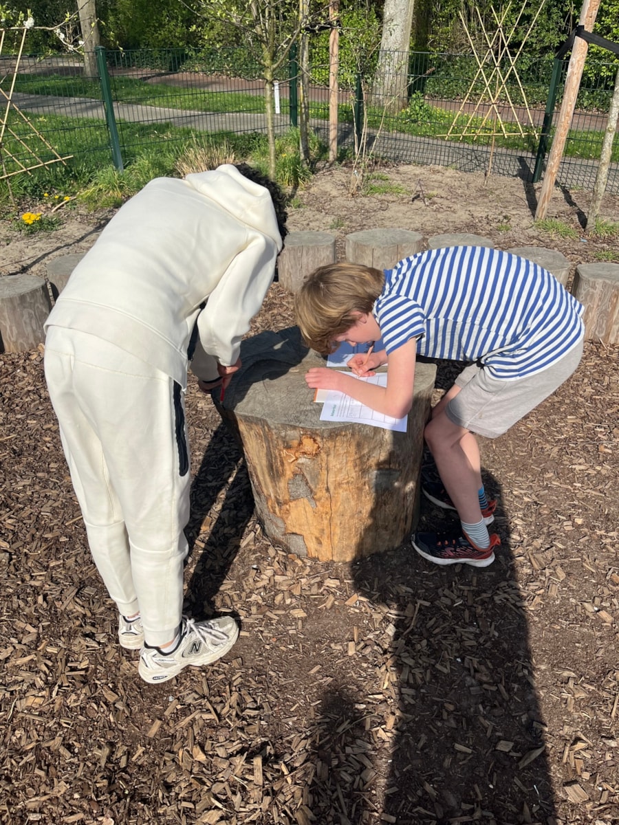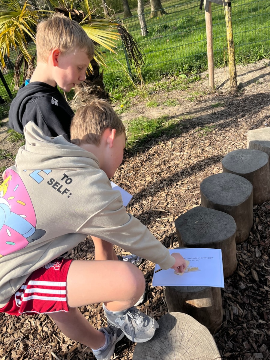 Het mooie weer kwam donderdag goed van pas tijdens de rekenles. We oefenden de afgelopen rekendoelen met een Zweeds renspel op het schoolplein, waarbij de kinderen al bewegend lerend zo snel mogelijk het antwoord op alle sommen (inclusief berekeningen) moesten inleveren.