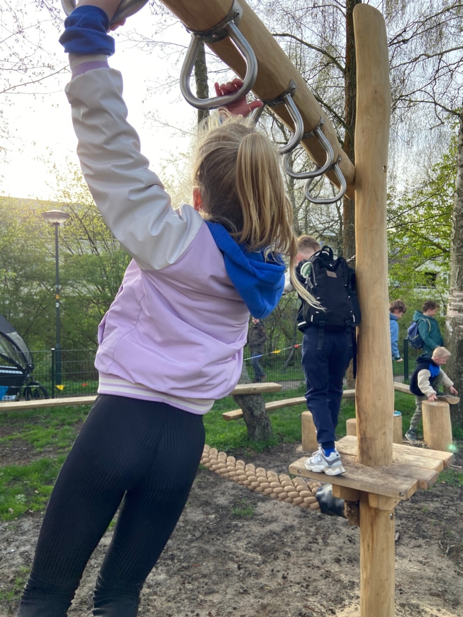 We hebben met de gymles ontzettend genoten van het nieuwe speeltoestel. De hele gymles hebben ze op het speeltoestel gespeeld.
