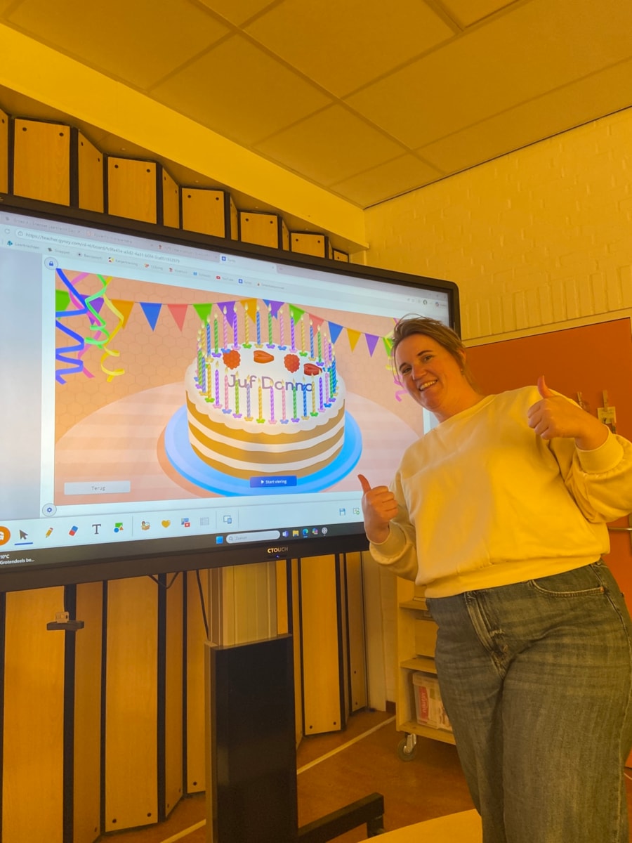 Het was een gezellig weekje, maar tegelijkertijd ook veel onrust en spanning in het lijf. Volgende week gaan we daar weer even beter opletten. Woensdag vierde we de verjaardag van Elias en werden we getrakteerd op een heerlijk zakje chips. Vrijdag hadden we dubbelfeest. Eerst werd het speeltoestel geopend, in de ochtend de verjaardag van Eva en in de middag de verjaardag van juf Donna. Van Eva kregen wij een hele lekkere traktatie in de vorm van een chipsketting en juf Donna trakteerde op een pannenkoek. Ik heb mij heel erg jarig gevoeld met de kinderen. Ook ik heb het verjaardagsprogramma doorlopen. Het cadeautje wat gedobbeld werd, was dan voor de groep bestemd. Vonden ze nog wel slim van zichzelf;)