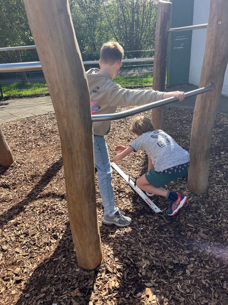 Aangezien we wat problemen hadden met de wifi gingen we tijdens de rekenles van donderdag buiten aan de slag met het maken van een plattegrond van het schoolplein. Dit paste fantastisch bij de doelen. Hierbij oefenden de kinderen met schaalberekening en het berekenen van oppervlakte.