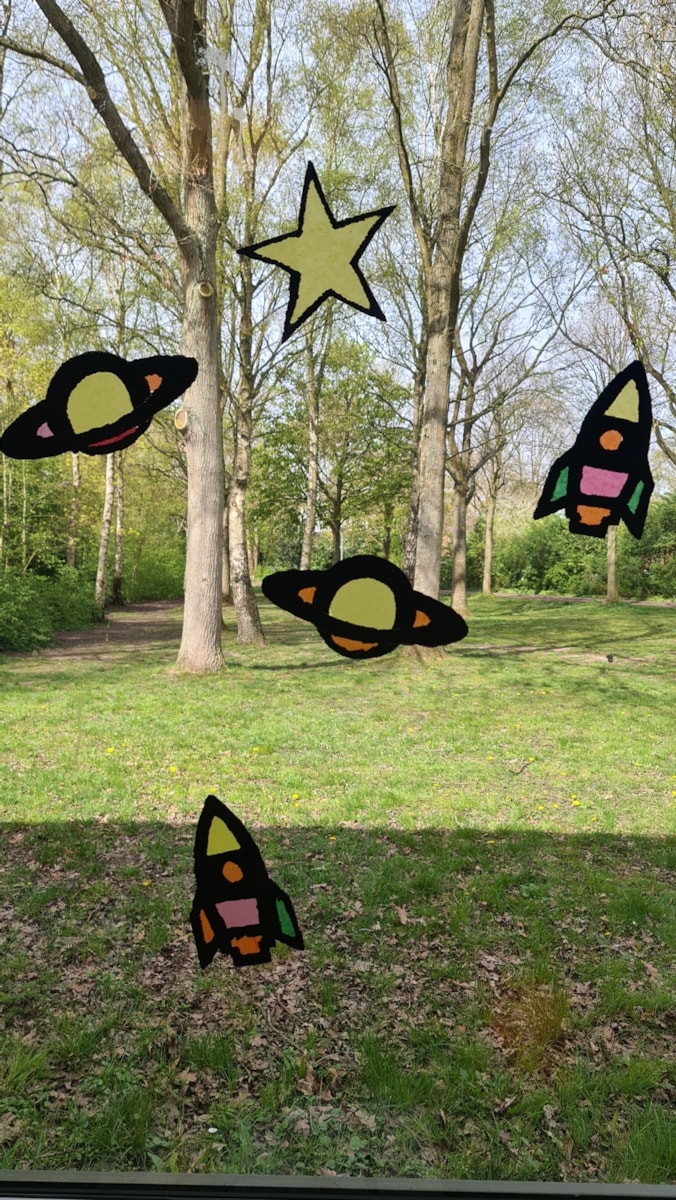 De eerste kinderen van groep 1 zijn begonnen met het maken van een ruimtefiguur opgevuld met vliegerpapier. Deze hangen al op het raam. Ook zijn we deze week gestart met een heel geheimzinnig project. Moeders blijven gewoon welkom bij ons in de klas, wij kunnen namelijk goed verstoppen.