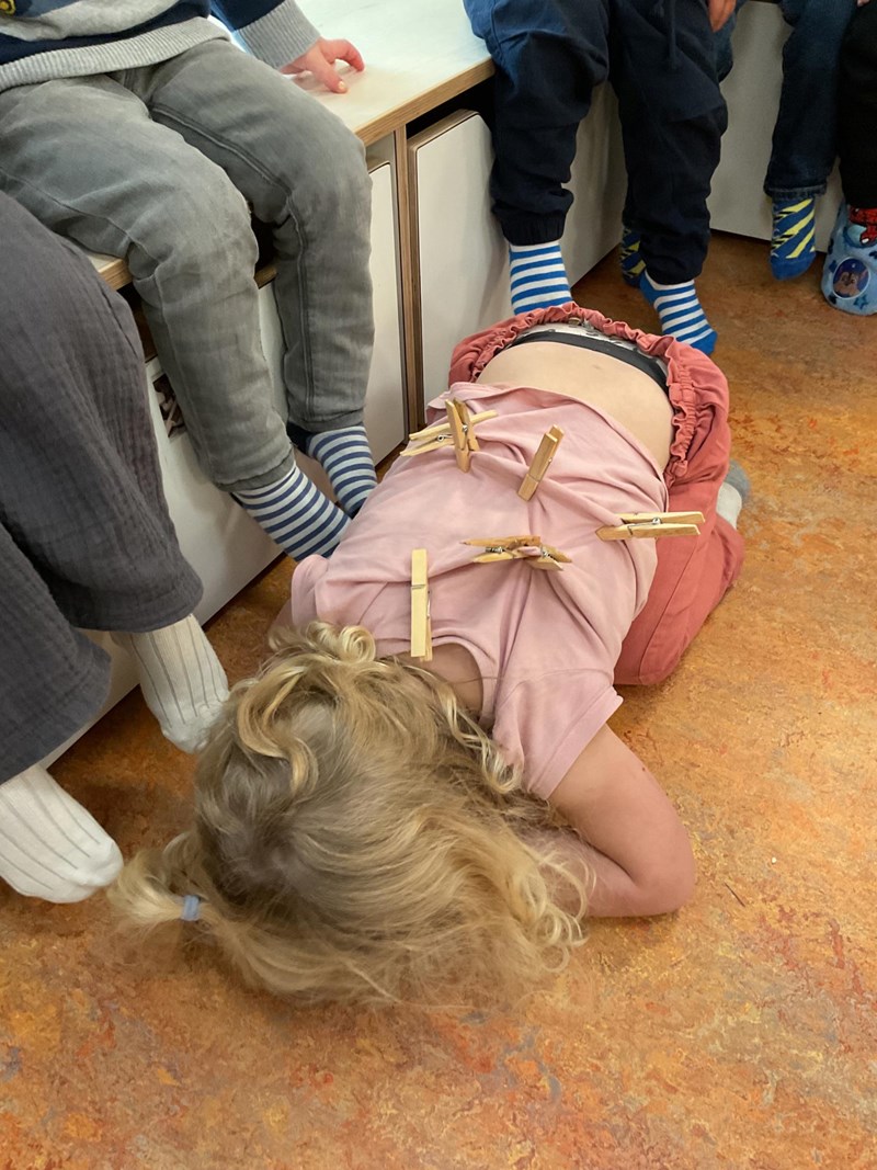 de huishoek was omgetoverd tot een echt heksenhuis waar de kinderen heksensoep konden maken. De lichttafel diende als vuur met daarop een ketel. Er waren verschillende ingrediënten beschikbaar…