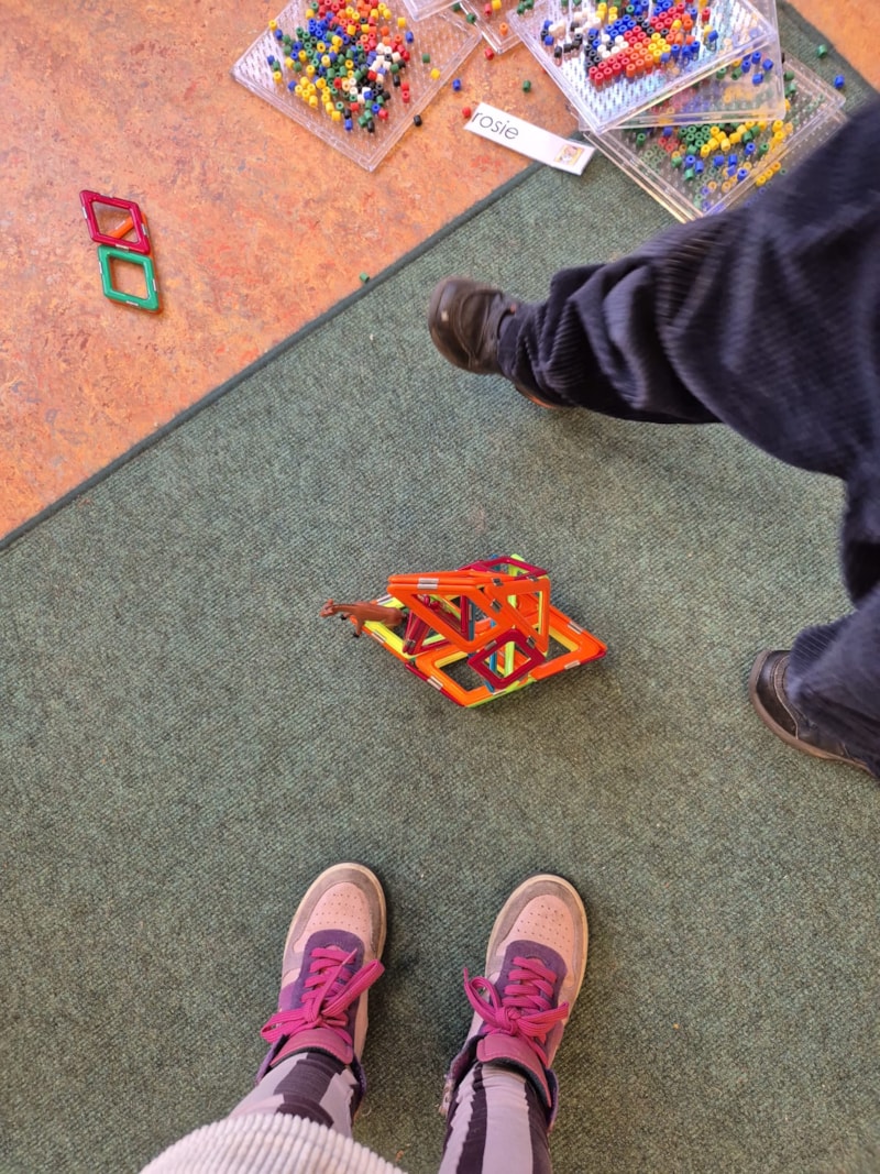 De oudste kleuters hebben een kralenplank gemaakt, aan de hand van het voorbeeld hebben de kinderen rij voor rij de kralen…